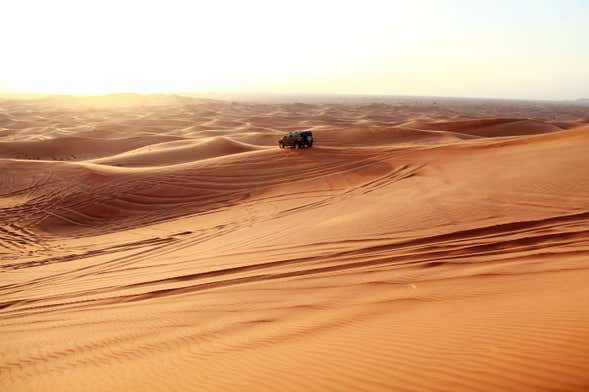 Verremo a prendervi in hotel e partiremo verso il deserto di Abu Dhabi, dove saliremo a bordo di una Land Cruiser 4x4 e daremo inizio alla nostra avventura. Tenetevi forti, perché in questo safari nel deserto di 30 minuti non mancheranno salti, dérapage e alta velocità! Inoltre, avrete l'opportunità di fare surf sulle dune del deserto con una tavola da sandboarding.