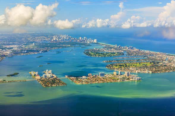Appena decollati, sorvoleremo il Museo Vizcaya e i suoi splendidi giardini di ispirazione europea. Continueremo il giro sorvolando i grattacieli di Miami, preludio alle imponenti ville delle celebrità a Star Island, Venetian Island o Palm Island.