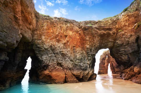 Successivamente, raggiungeremo la seconda meta dell'escursione, ovvero Praia di Aguas Santas, una famosissima spiaggia della Galizia comunemente nota come Praia das Catedrais. Questo sito naturale deve il suo nome alle formazioni rocciose che si innalzano dalla candida sabbia bianca e ricordano, per la loro forma, gli archi rampanti delle cattedrali gotiche.