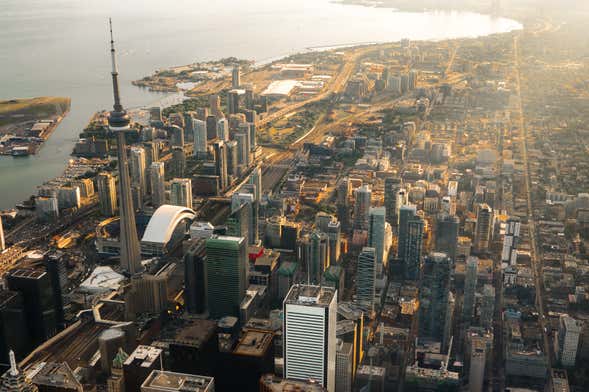 Inizieremo il tour del capoluogo dell'Ontario contemplando l'emblematico Gooderham Building. Sapete perché questo edificio è così famoso? Dopo averne scoperto la storia, andremo alla base della CN Tower. Questa colossale torre di trasmissione, che raggiunge i 553 metri di altezza, è il simbolo indiscusso di Toronto.
