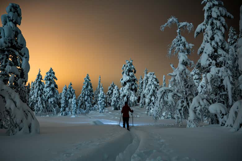 Caminaremos por la nieve como auténticos autóctonos y nos adentraremos en los paisajes nórdicos. Seguiremos la ruta que nos marcan las estrellas, mirando siempre al cielo para ver el fenómeno natural más sorprendente e impresionante del mundo, la aurora boreal. ¡Sentiréis la magia del silencio en los bosques de Laponia!