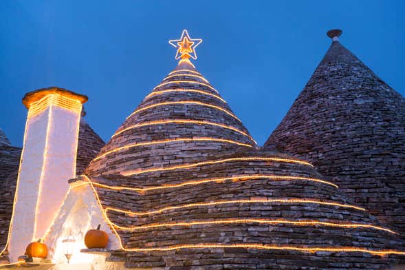 La última parada del día será en Alberobello, donde os dejaremos otra hora y media de tiempo libre para que podáis ir de compras y fotografiar vuestros rincones preferidos. ¿Sabíais que sus casas con tejados cónicos están declarados Patrimonio de la Humanidad? Son los llamados trullos, y en Navidad lucen todavía más bonitos.