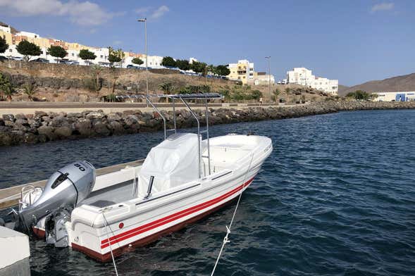Si estáis en Morro Jable y queréis explorar a la costa de Fuerteventura, os recomendamos alquilar una lancha. Para ello, nos encontraremos en el puerto de Morro Jable y, tras recibir las indicaciones por parte de nuestros instructores, podréis comenzar la navegación.