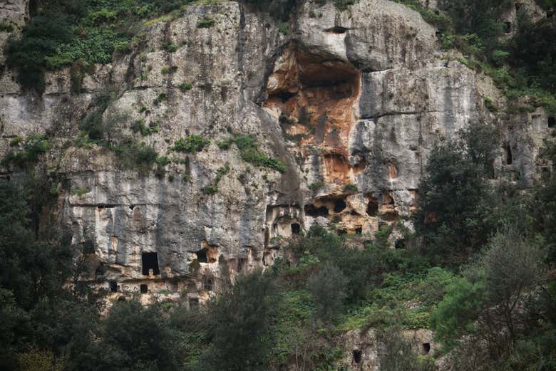 Caminaremos junto a antiguas tumbas excavadas en la roca y veremos el interior de una imponente cueva que os dejará sin palabras, la Grotta dei Pistrelli. Además, podréis sumergiros en las frescas aguas del río Calcinara.