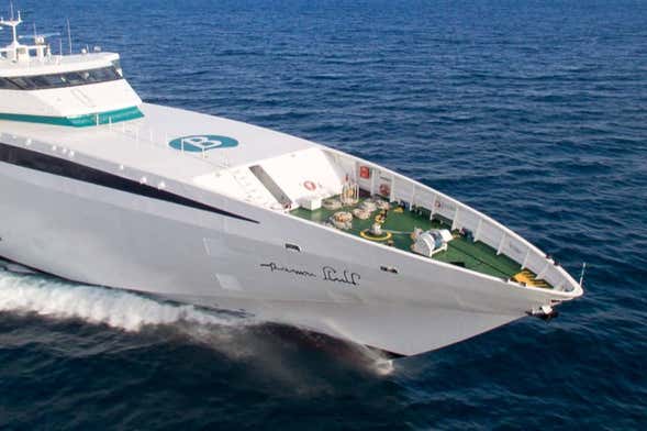 O ferry da Baleària une o porto de Alcudia (Mallorca) com o de Ciutadella (Menorca) em um cômodo trajeto que não dura mais que duas horas.