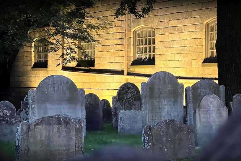 Depois, caminharemos até o Boston Athenaeum, onde você conhecerá a história do fantasma de um reverendo que ainda ronda seus corredores. O percurso continuará em um dos hotéis mais assombrados dos Estados Unidos e, em seguida, iremos ao King's Chapel Burying Ground, o cemitério mais antigo da cidade.