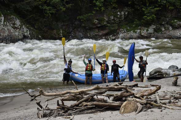 Nas margens, os botes e os remos estarão nos esperando, então só teremos que ajustar os capacetes, os coletes e os demais materiais de segurança. Depois de uma breve instrução técnica, iniciaremos uma descida de rafting que nos levará entre 3 e 4 horas.