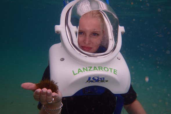 Durante 30 minutos, teremos a impressionante experiência de caminhar no fundo do mar, observando a fauna marinha de Lanzarote que habita em águas pouco profundas. Teremos a mesma perspectiva de um mergulhador sem precisar de certificado ou conhecimentos prévios!
