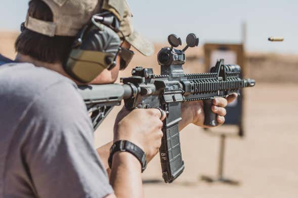 Práticas de tiro no deserto de Las Vegas
