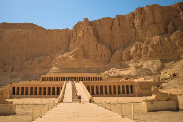 Nossa seguinte parada será o Templo de Hatshepsut, dedicado à única mulher que reinou no Egito durante um longo período. Obra do arquiteto Sennenmut, o Templo de Hatshepsut é totalmente diferente dos outros, já que tem uma parte escavada na rocha e outra exterior em forma de terraço.