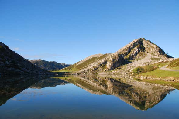 A rota continuará pelo Parque Nacional dos Picos da Europa. Enquanto viajamos através das montanhas, chegaremos ao mirante de Entrelagos, onde se tem uma das melhores vistas sobre os famosos lagos de Covadonga. A vista panorâmica dos lagos Ercina e Enol vai deixar você completamente apaixonado.
