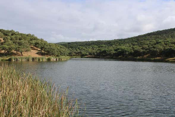 Entraremos em terreno dedicado ao pasto enquanto vemos os imensos campos de azinheiras e sobreiros que rodeiam a represa. Nessa região de Badajoz são muitos os que se dedicam à criação do porco de bolota e à obtenção da cortiça. Você sabia que a cortiça do tronco demora entre 9 e 14 anos para se regenerar?